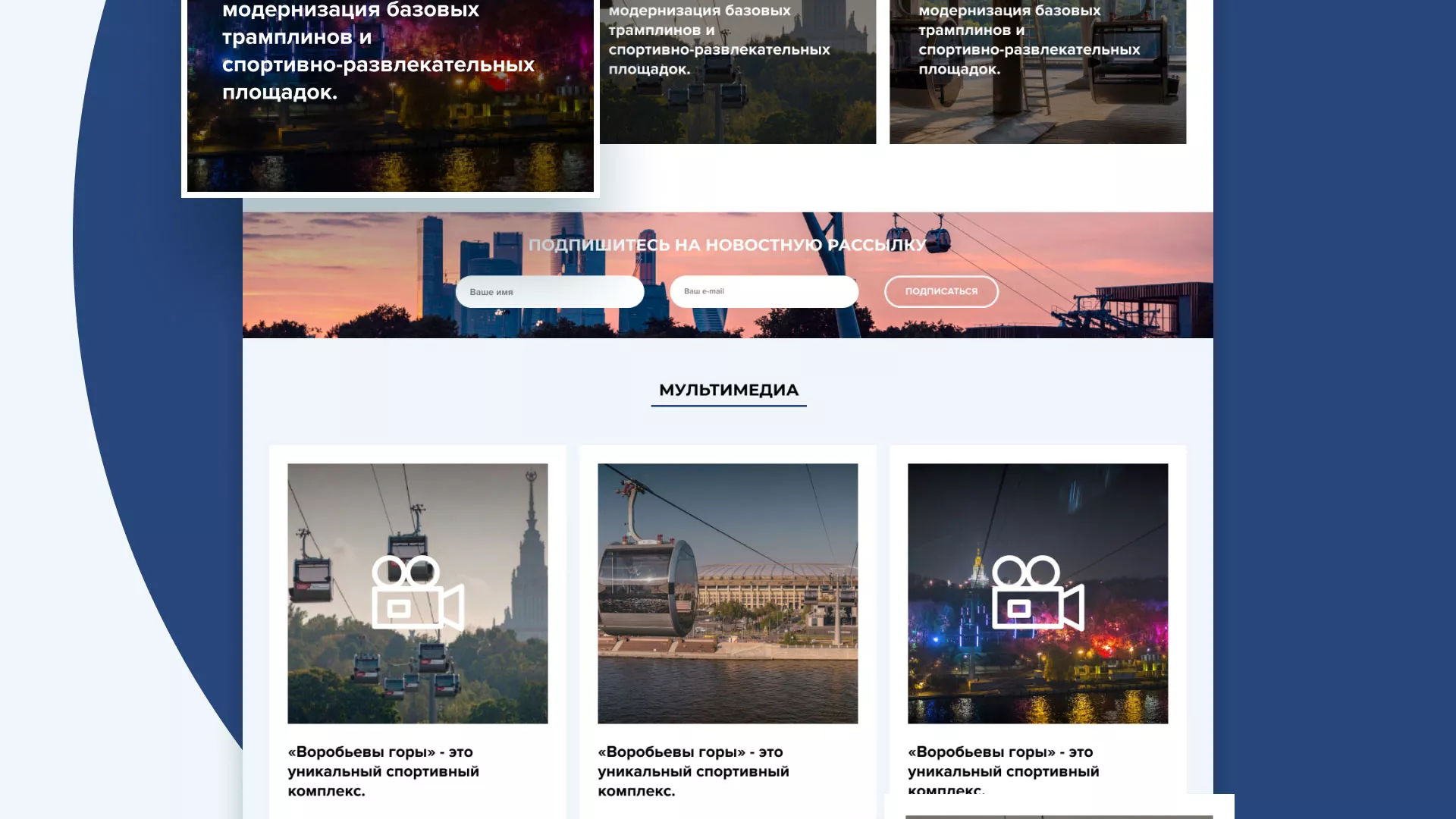 Разработка сайта в Куртамыше для спортивно-развлекательного комплекса «Воробьёвы горы»